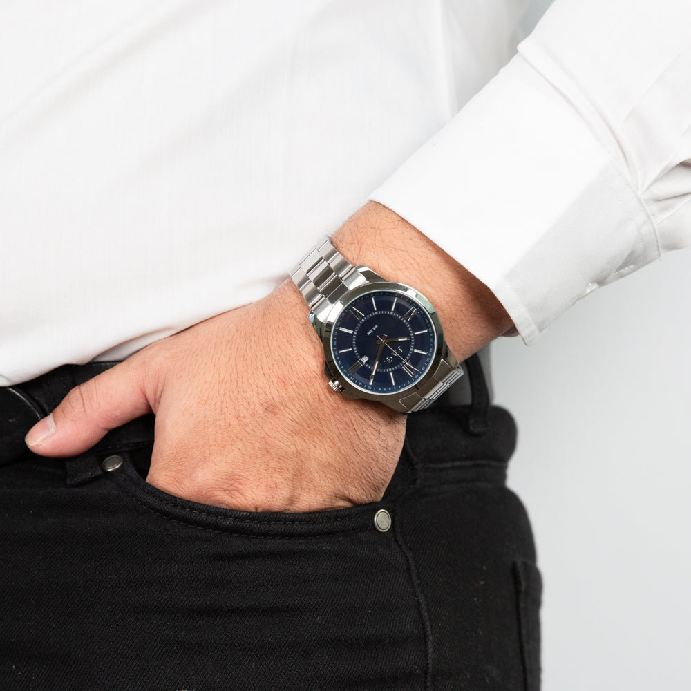 • Precise quartz movement • Stainless steel case & bracelet • Water resistant to 50m pressure • Date window