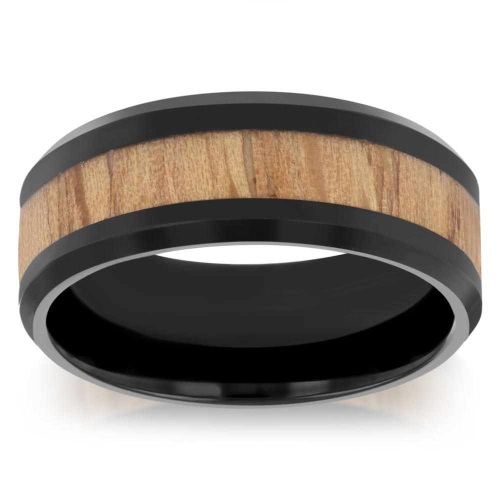 Laminated Stainless Steel Black Ring with Wood Inly