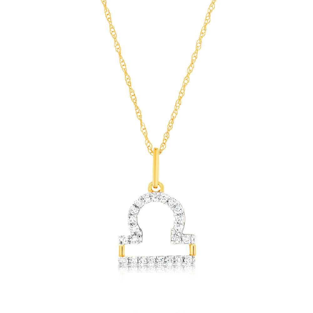 Luminesce Lab Diamond 9ct Yellow Gold Libra 1/10 Carat Diamond Pendant With Chain