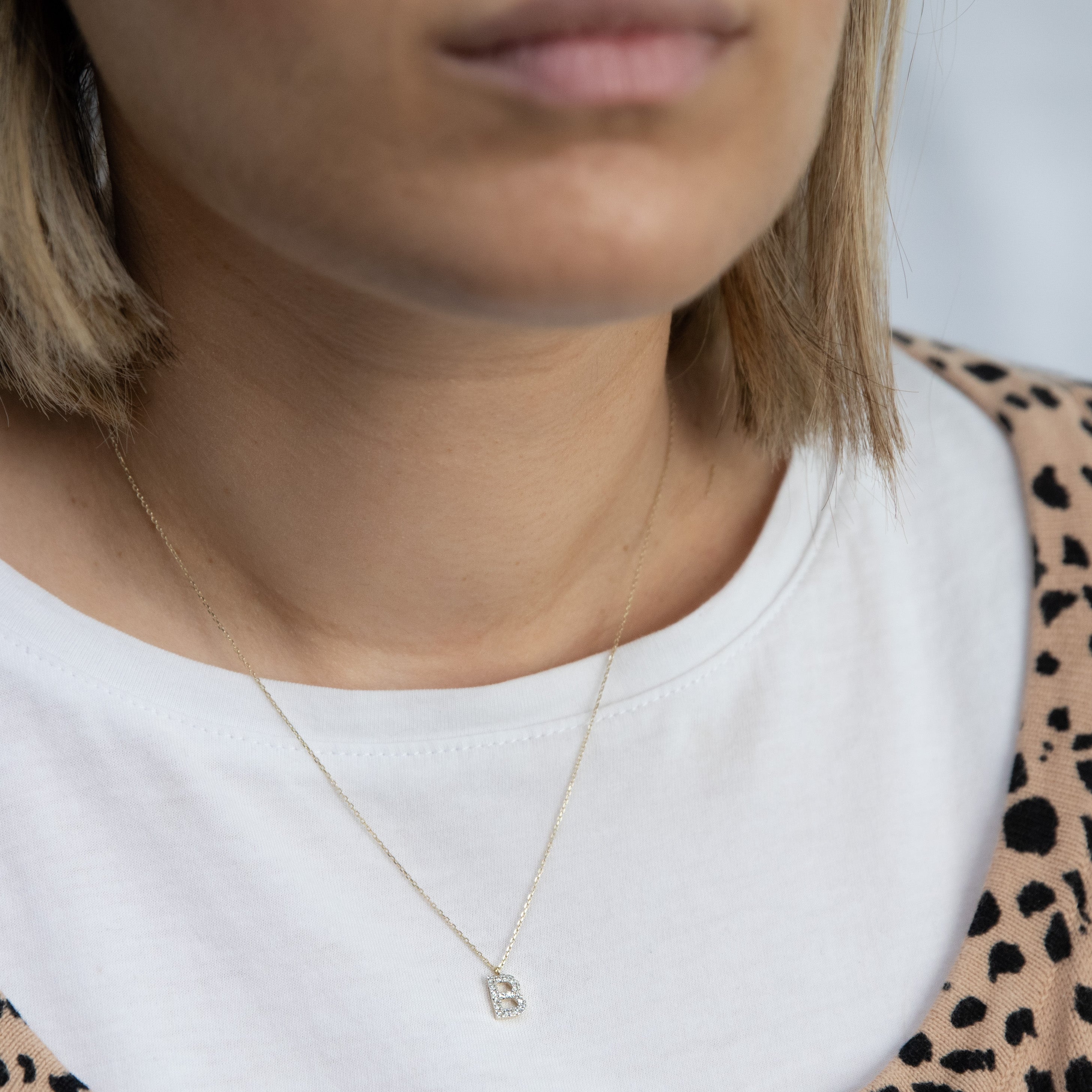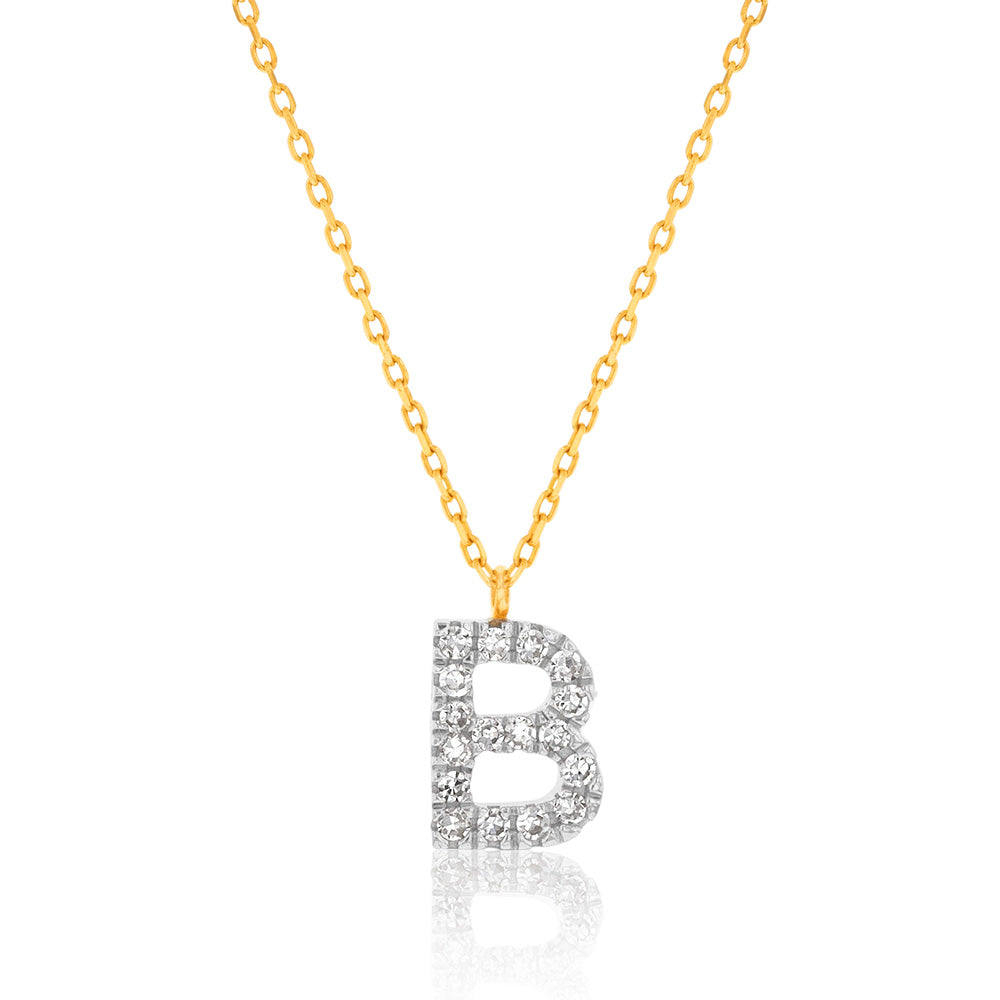 Luminesce Lab Diamond B Initial Pendant in 9ct Yellow Gold with Adjustable 45cm Chain