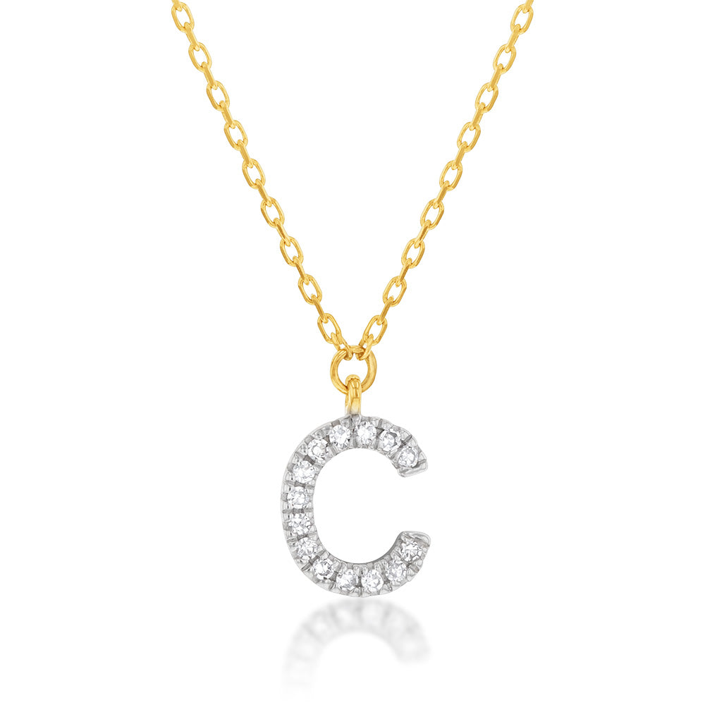 Luminesce Lab Diamond C Initial Pendant in 9ct Yellow Gold with Adjustable 45cm Chain