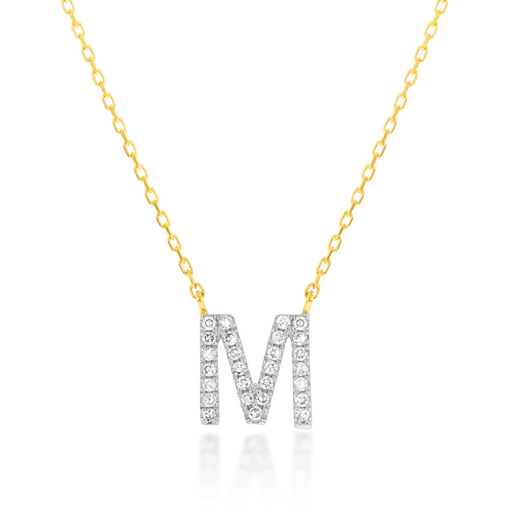 Luminesce Lab Diamond M Initial Pendant in 9ct Yellow Gold with Adjustable 45cm Chain