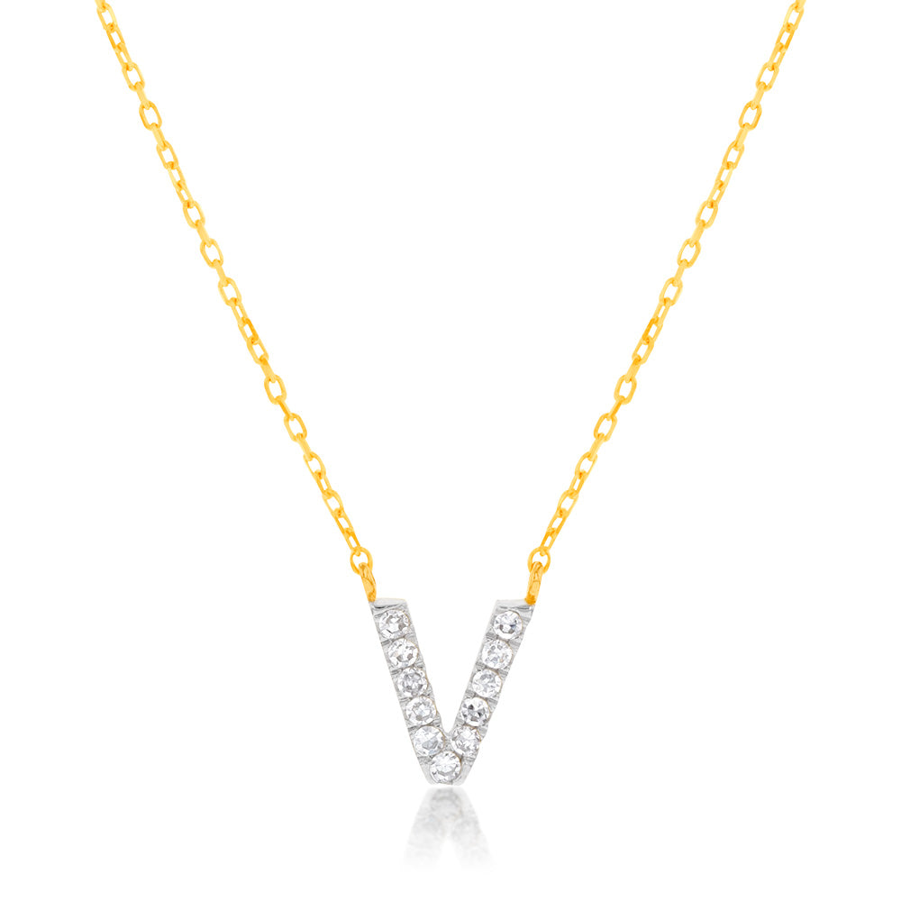 Luminesce Lab Diamond V Initial Pendant in 9ct Yellow Gold with Adjustable 45cm Chain