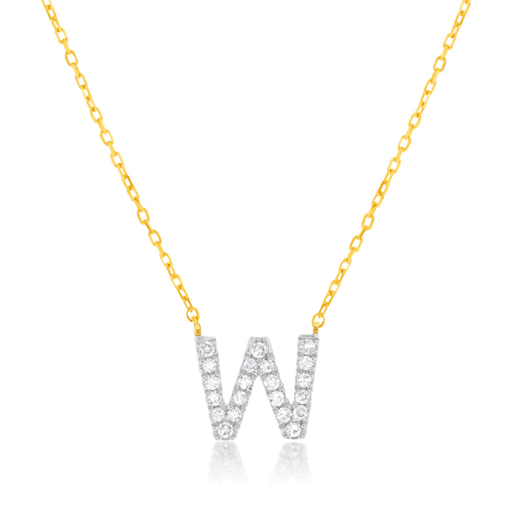 Luminesce Lab Diamond W Initial Pendant in 9ct Yellow Gold with Adjustable 45cm Chain