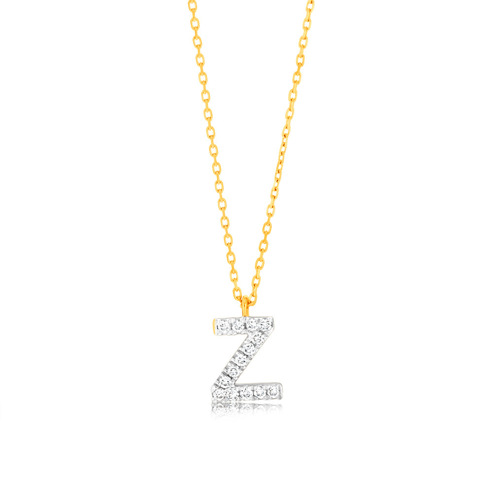 Luminesce Lab Diamond Z Initial Pendant in 9ct Yellow Gold with Adjustable 45cm Chain