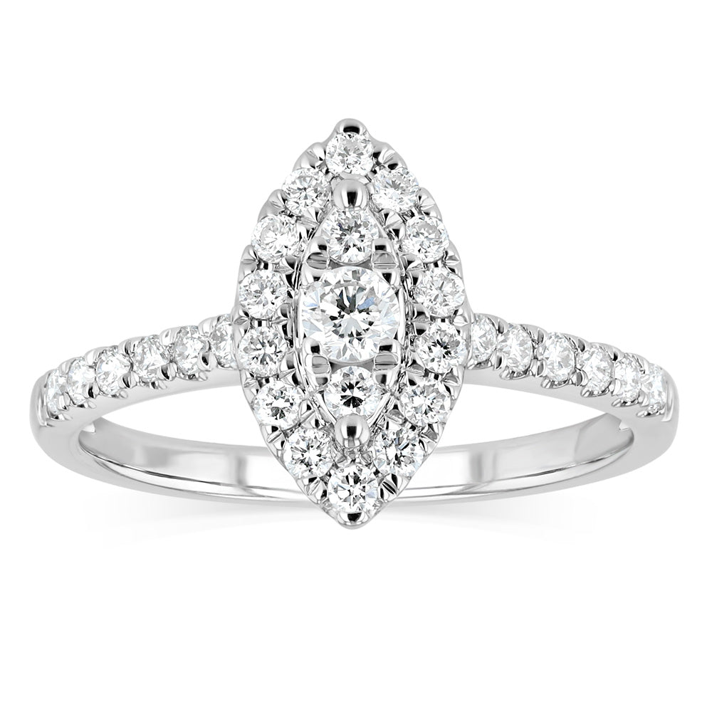 Luminesce Lab Grown 1/2 Carat with Round Brilliant 1/10 Carat Centre Diamond Marquise Ring Shape in 9ct White Gold