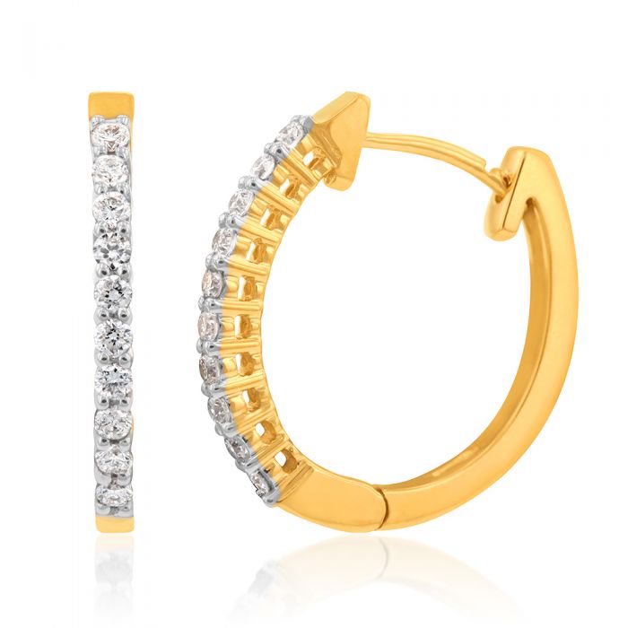 Luminesce Lab Grown 1/3 Carat Diamond Claw Hoop Earrings in 9ct Yellow Gold