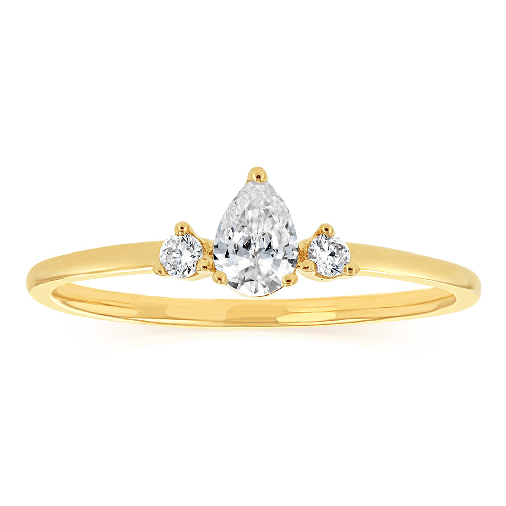 Luminesce Lab Grown 1/4 Carat Diamond Pear Ring in 9ct Yellow Gold