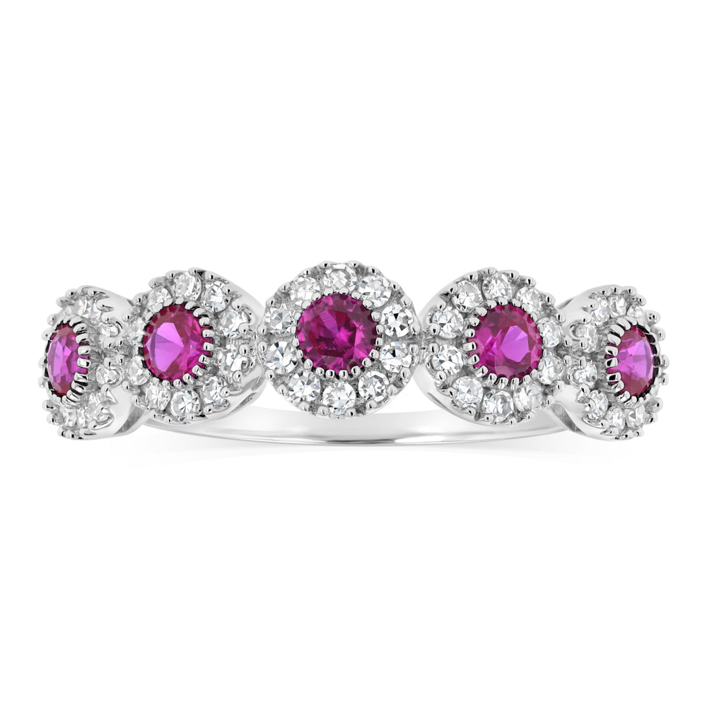 Luminesce Lab Grown 1/4 Carat Diamonds 3 Created Ruby Sterling Silver