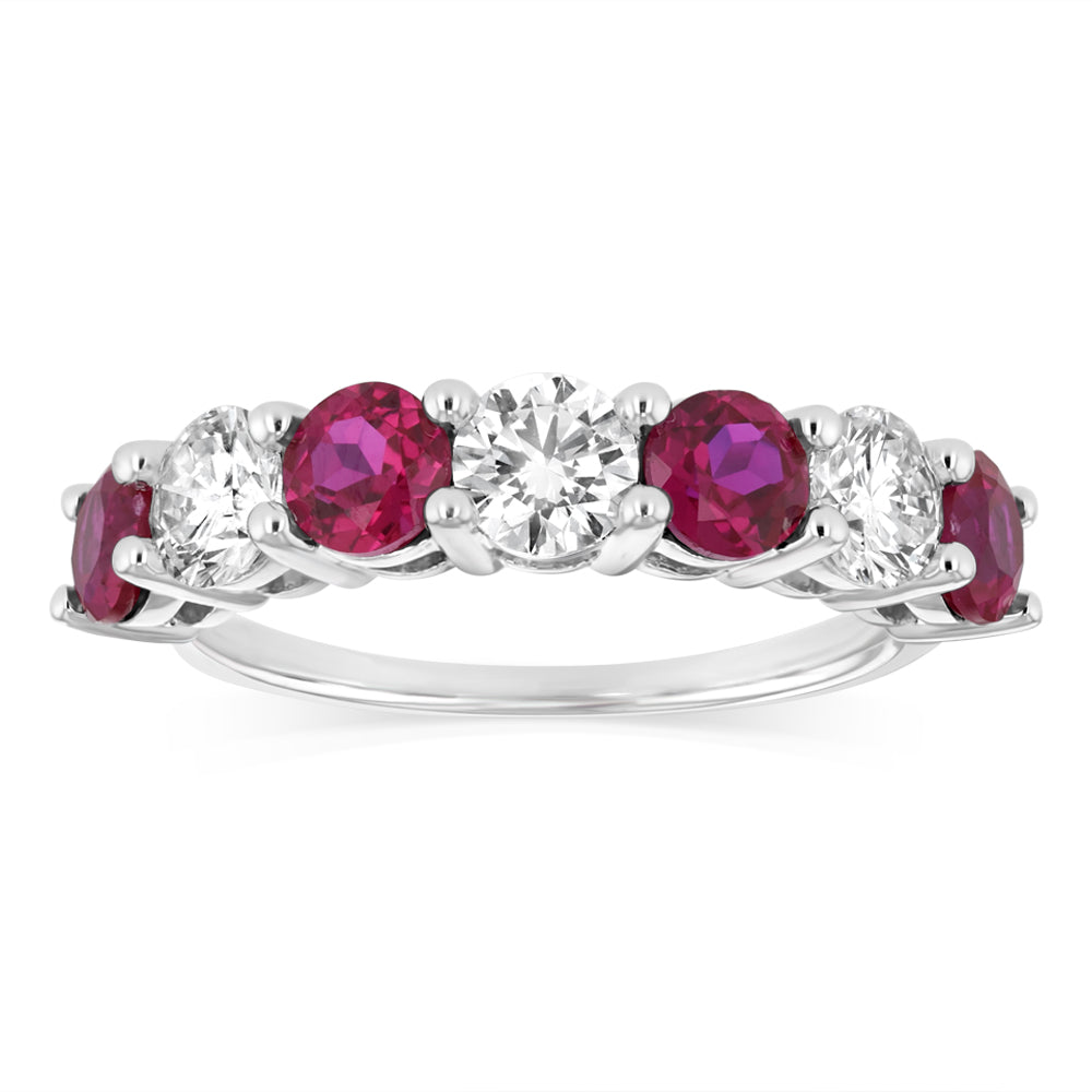 Luminesce Lab Grown 1.40 Carats Created Ruby with 1 Carat Diamond Ring in Sterling Silver