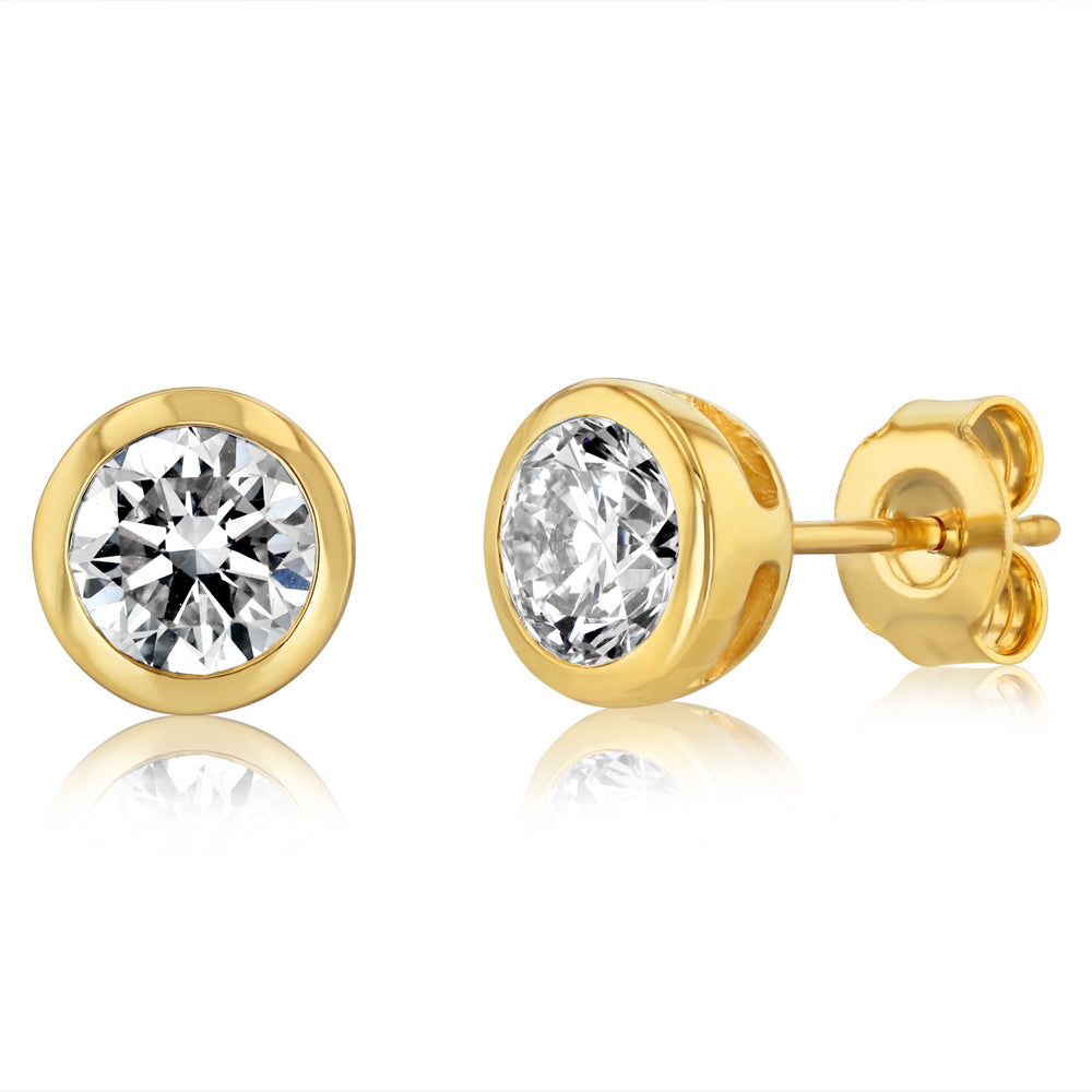 Luminesce Lab Grown 1.5 Carat Diamond Bezel Set Earrings in 9ct Yellow Gold