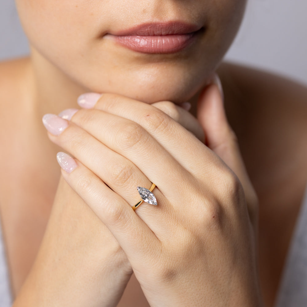 Luminesce Lab Grown 1 Carat Certified Marquise Diamond Solitaire Ring in 18ct Yellow Gold