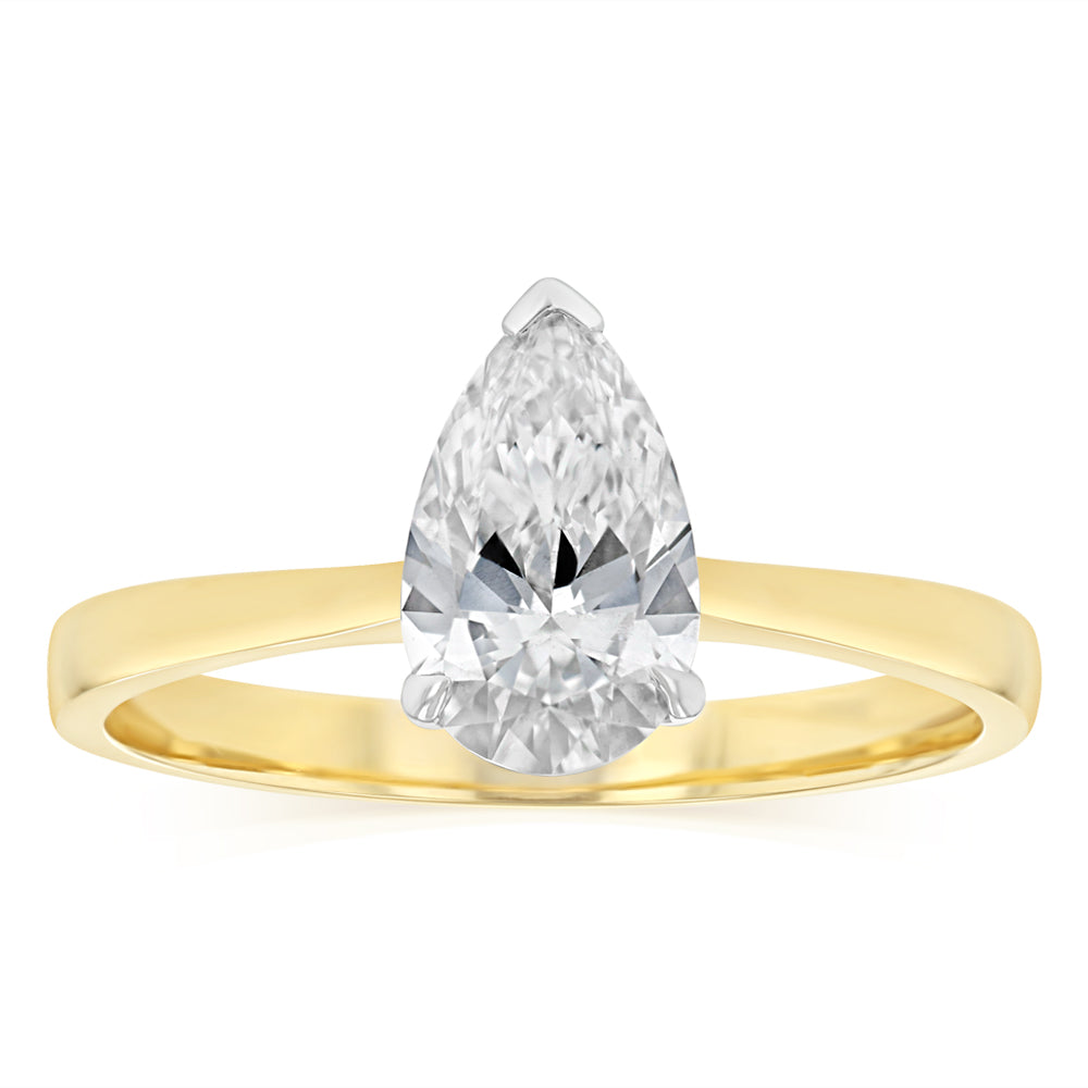 Luminesce Lab Grown 1 Carat Certified Pear Diamond Solitaire Ring in 18ct Yellow Gold