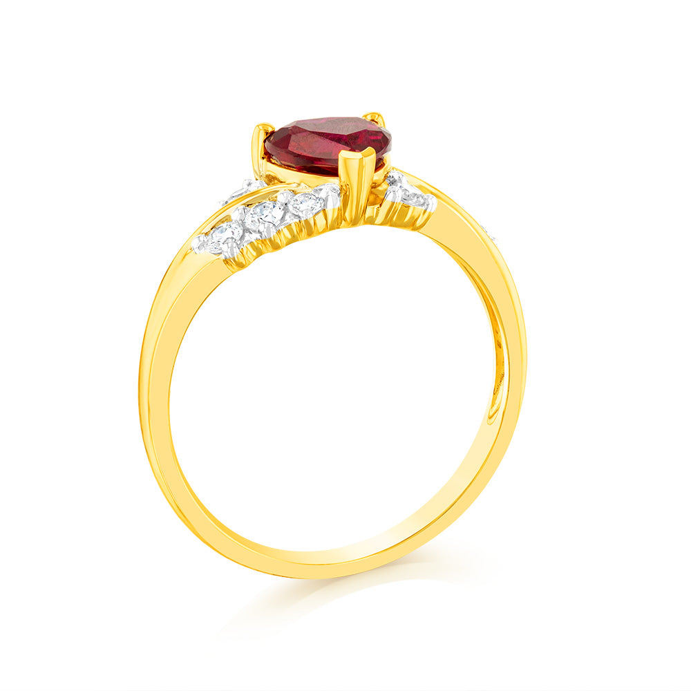 Luminesce Lab Grown 1 Carat Created Ruby Heart Ring with 1/5 Carat of Diamonds in 9ct Yellow Gold