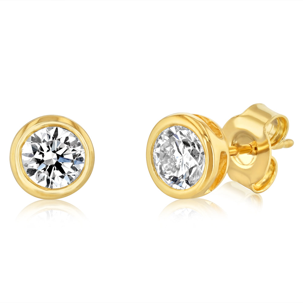Luminesce Lab Grown 1 Carat Diamond Bezel Set Earrings in 9ct Yellow Gold