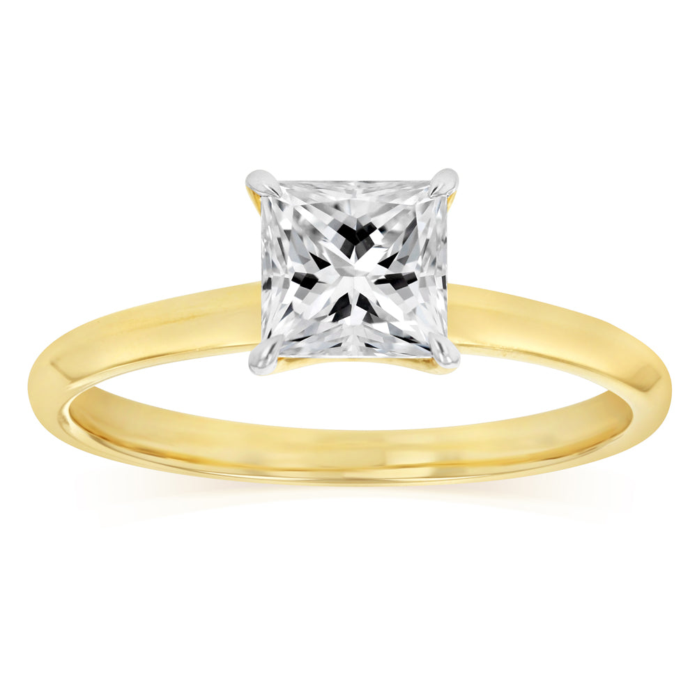 Luminesce Lab Grown 1 Carat Diamond Princess Cut Solitaire Ring in 9ct Yellow Gold