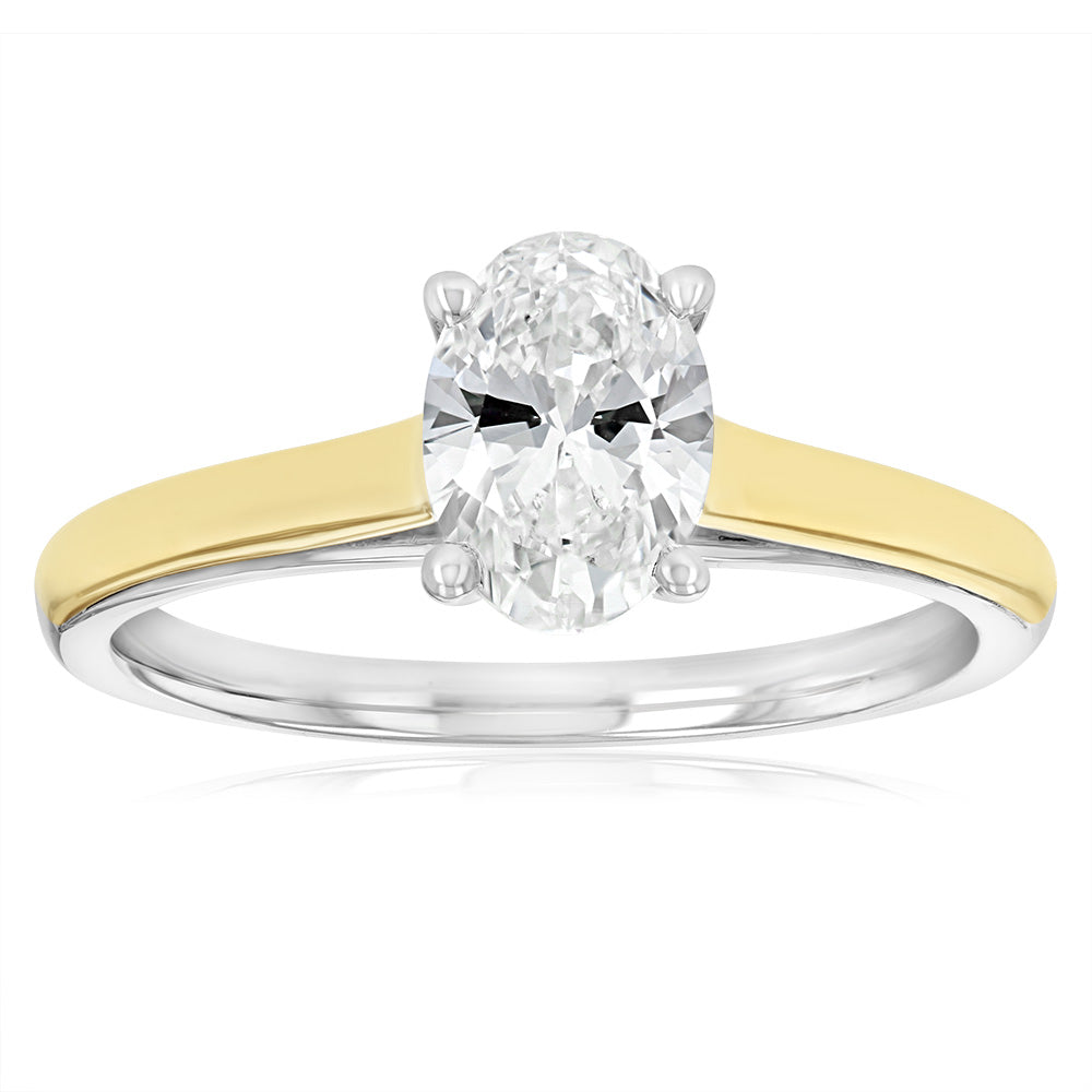 Luminesce Lab Grown 1 Carat Diamond Solitaire Oval Ring in 9ct Yellow Gold and Sterling Silver