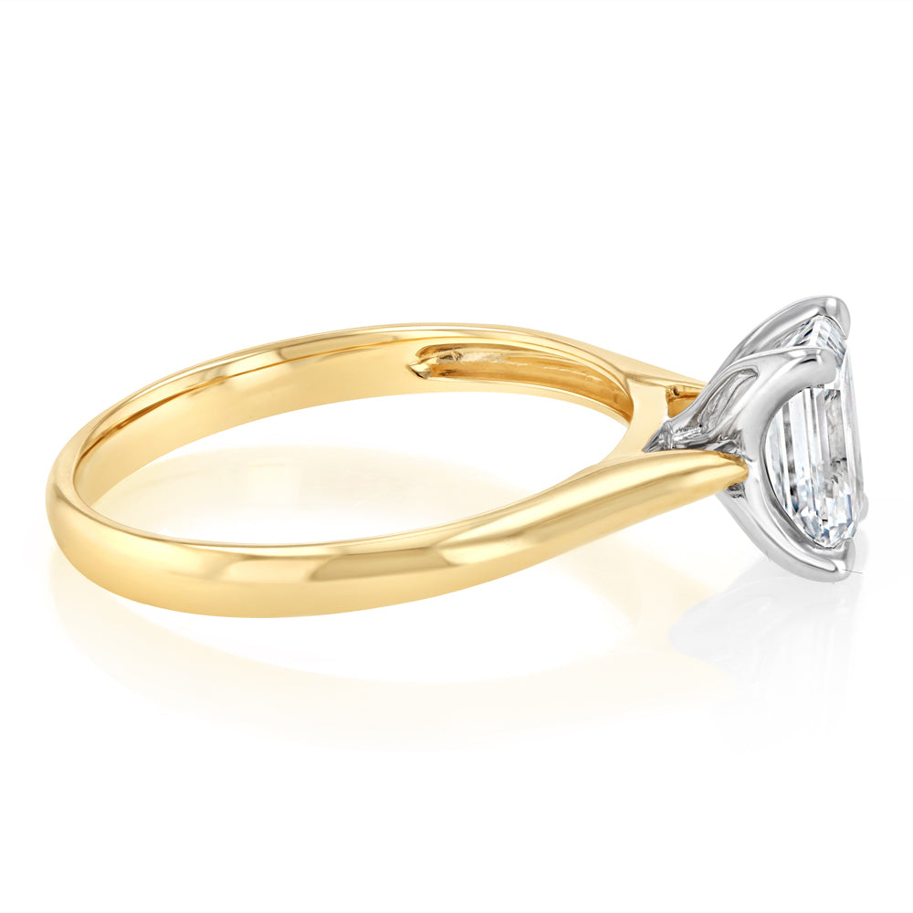 Luminesce Lab Grown 1 Carat Emerald Diamond Solitaire Ring in 9ct Yellow Gold