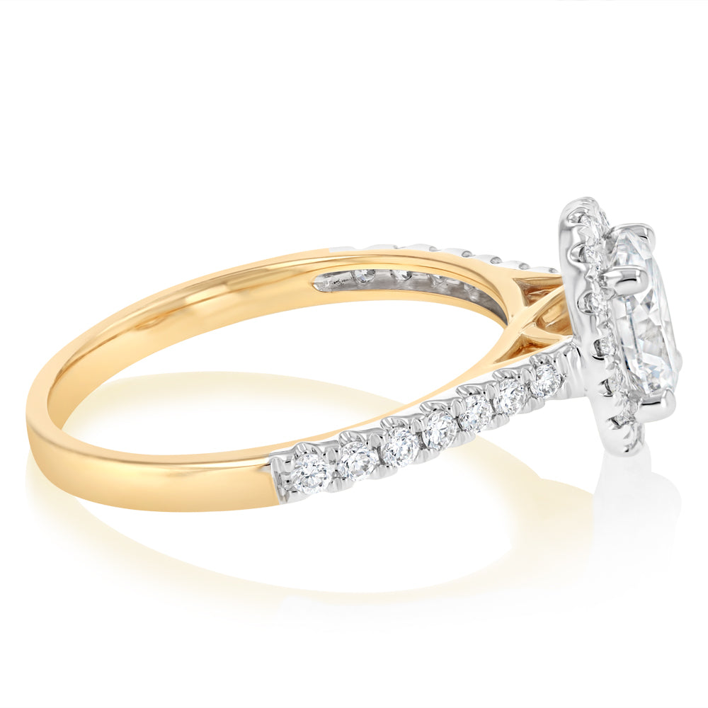 Luminesce Lab Grown 1 Carat Halo Oval Brilliant Cut Ring in 9ct Yellow Gold
