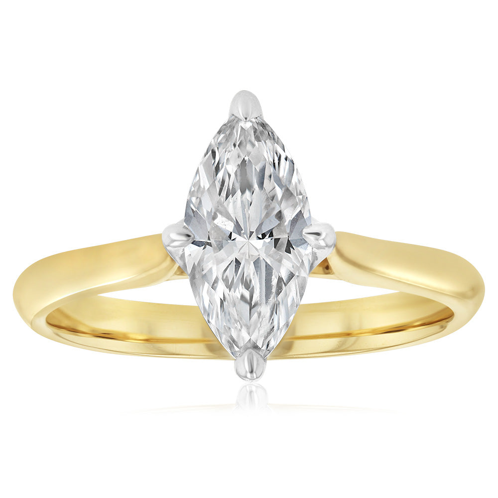 Luminesce Lab Grown 1 Carat Marquise Diamond Solitaire Ring in 9ct Yellow Gold