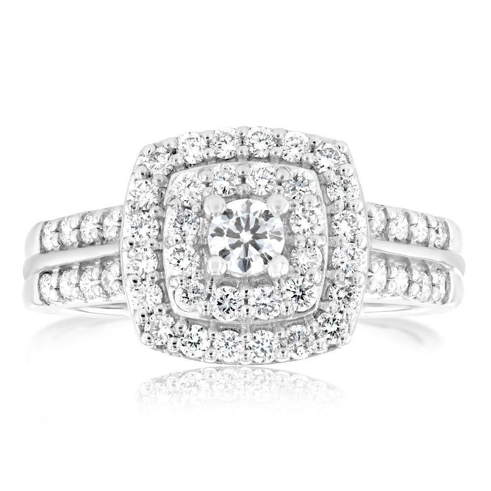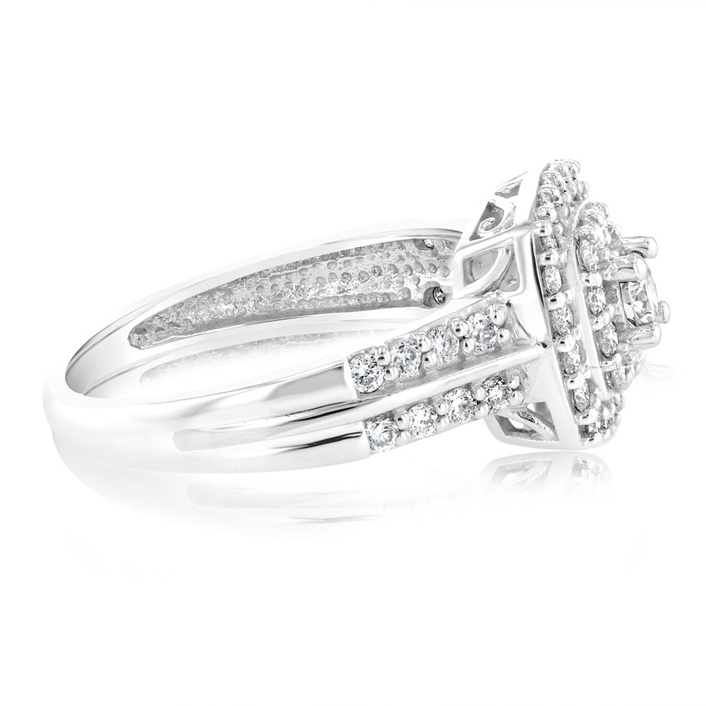 Luminesce Lab Grown 10ct White Gold 3/4 Carat Cushion Shaped Ring