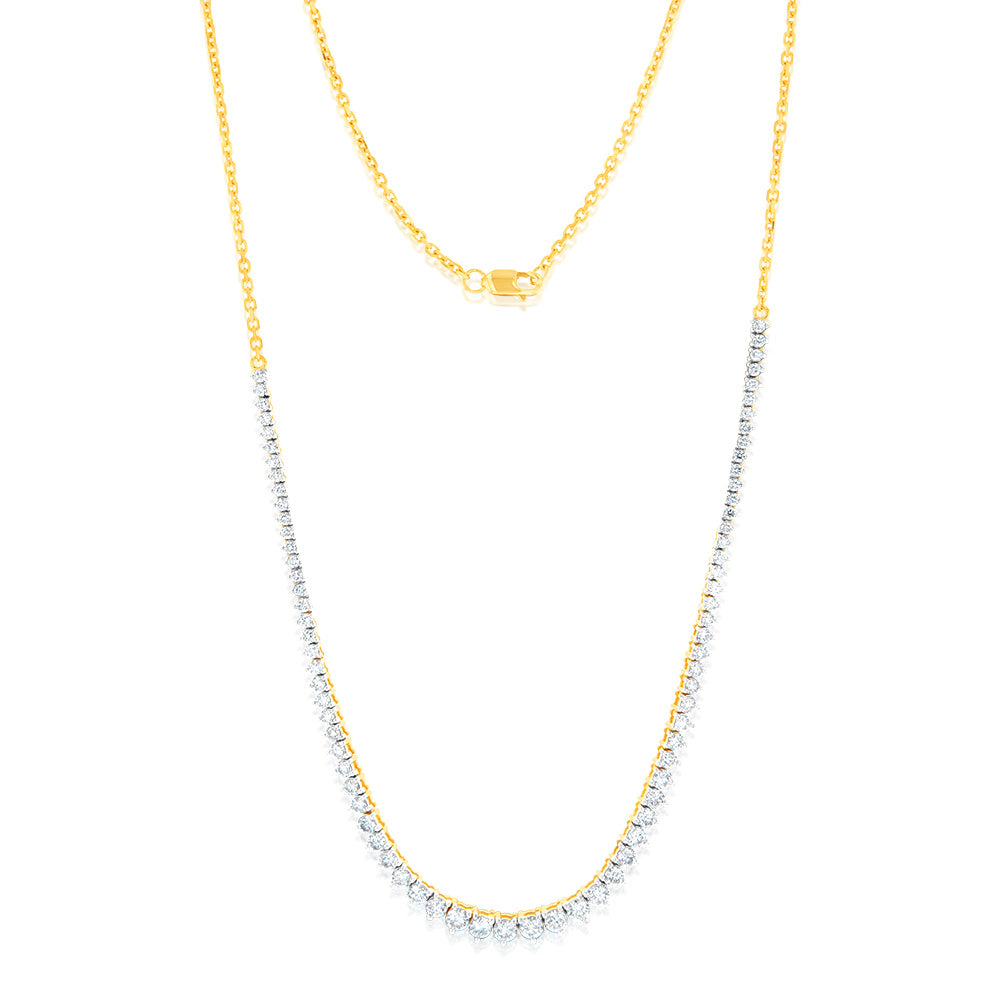 Luminesce Lab Grown 10ct Yellow Gold 3 Carat Diamond Tennis Necklace