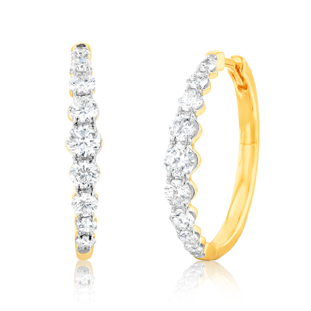 Luminesce Lab Grown 10ct Yellow Gold Hoop Earrings in 1 Carat Diamond