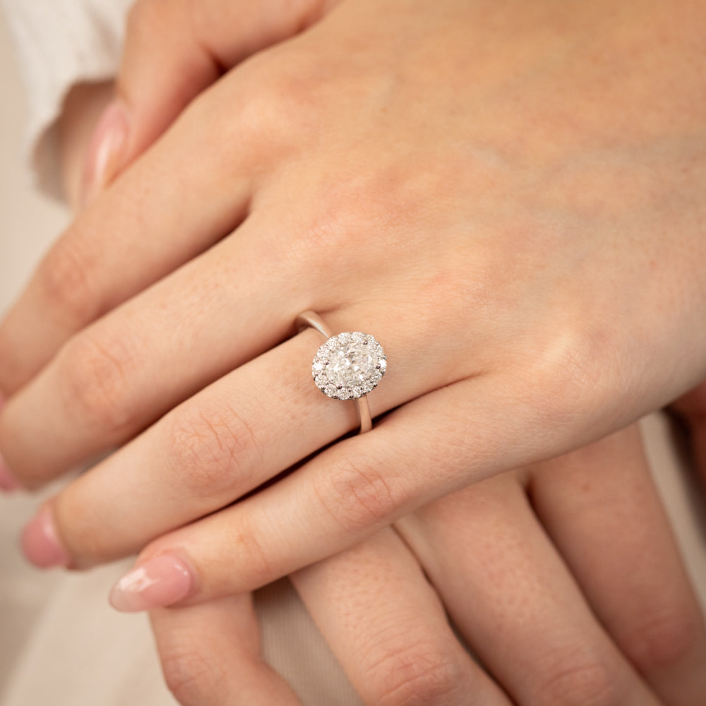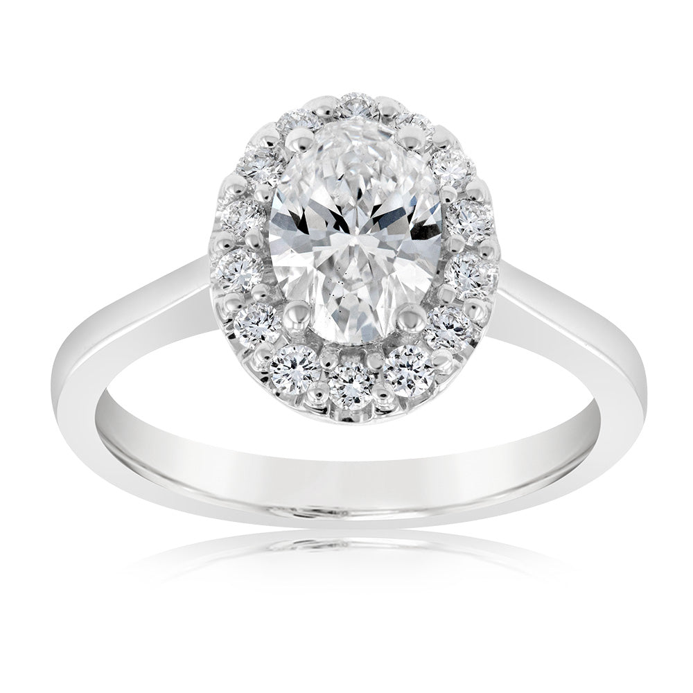 Luminesce Lab Grown 18ct White Gold 1.3 Carat Diamond Oval Halo Ring