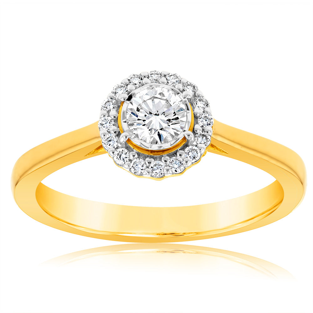 Luminesce Lab Grown 18ct Yellow Gold 0.30 Carat Diamond Solitaire Ring with Centre Diamond 0.25 Carat
