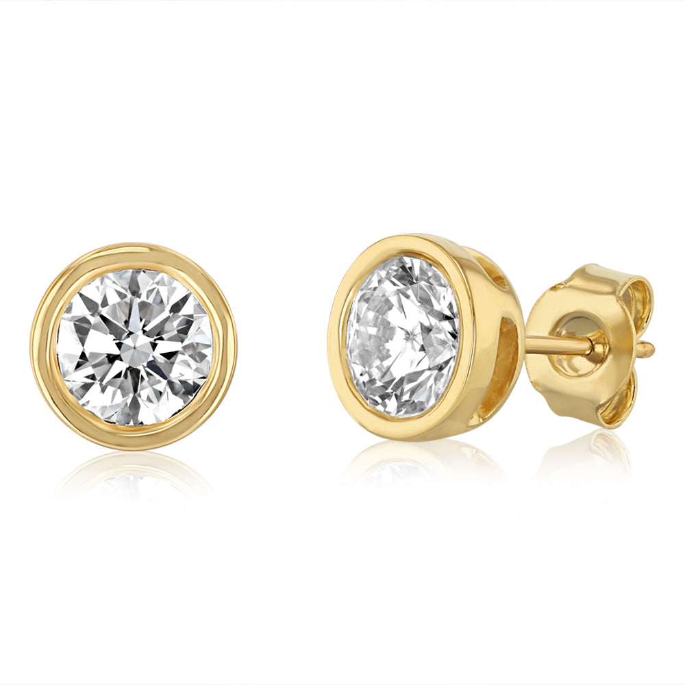 Luminesce Lab Grown 2 Carat Diamond Bezel Set Earring in 9ct Yellow Gold