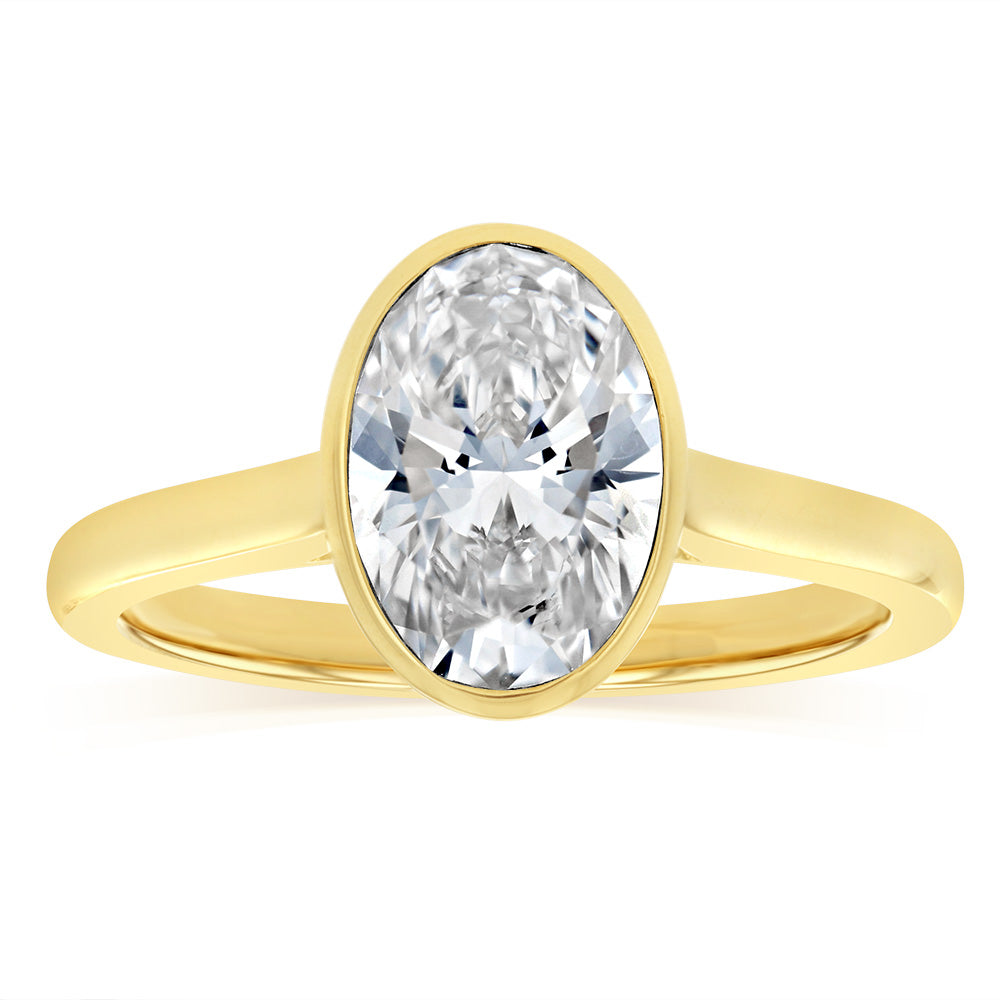Luminesce Lab Grown 2 Carat Diamond Bezel Solitaire Ring in 9ct Yellow Gold