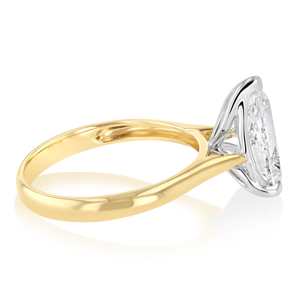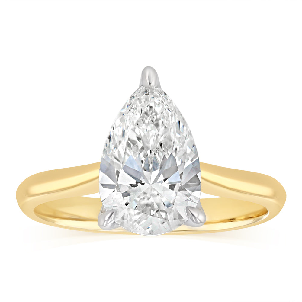 Luminesce Lab Grown 2 Carats Pear Diamond Solitaire Ring in 9ct Yellow Gold