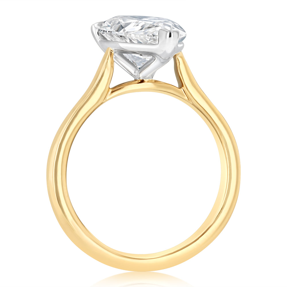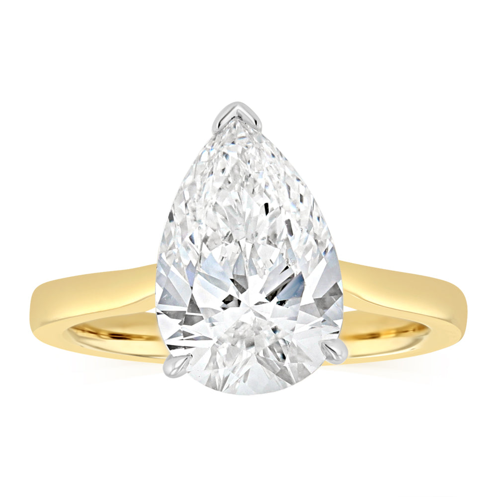Luminesce Lab Grown 3 Carat Diamond Pear Solitaire Ring in 9ct Yellow and White Gold