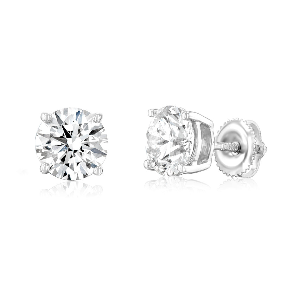 Luminesce Lab Grown 3 Carat Solitaire Diamond Stud Earrings in 14ct White Gold