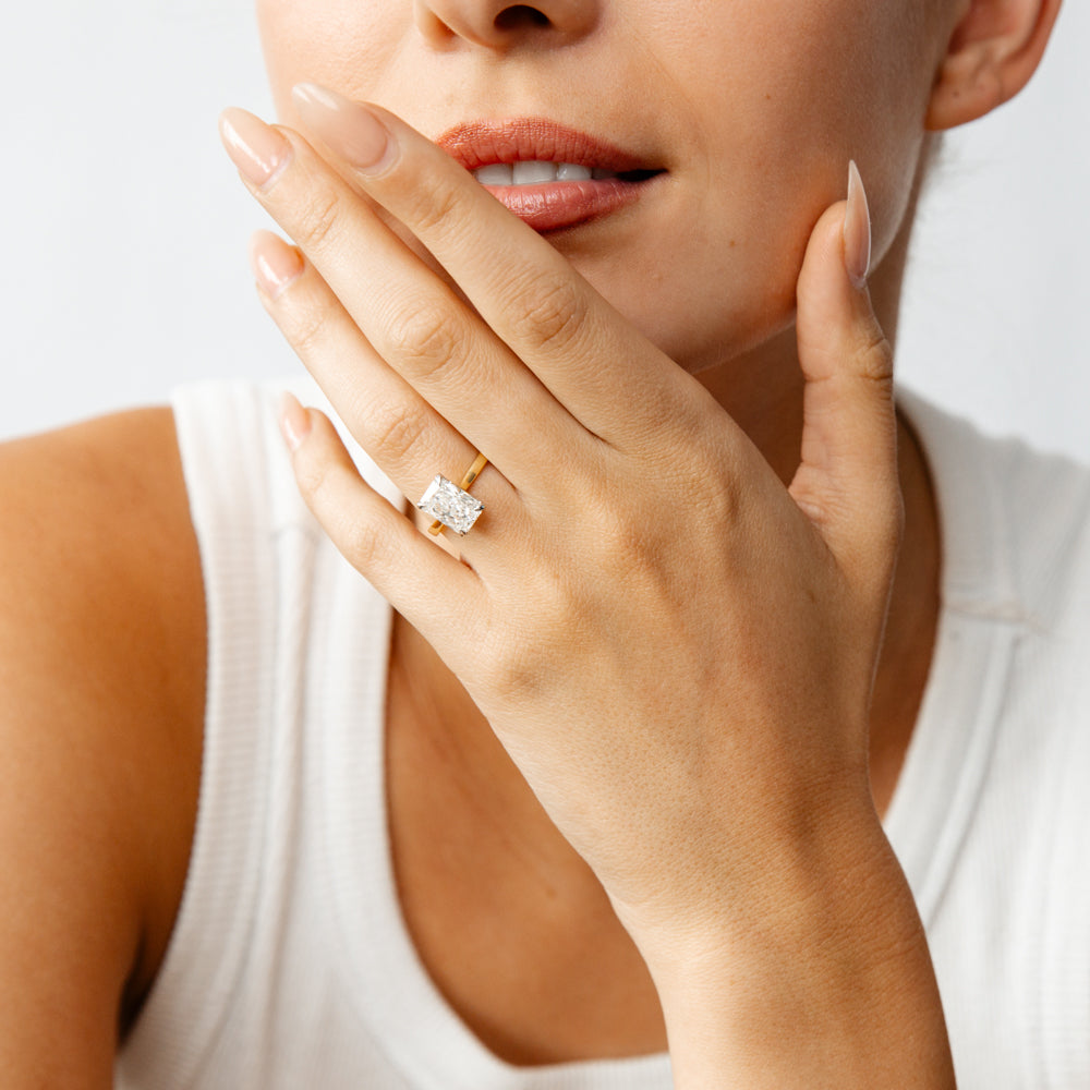 Luminesce Lab Grown 3 Carats Certified Radiant Diamond Solitaire Ring in 18ct Yellow Gold