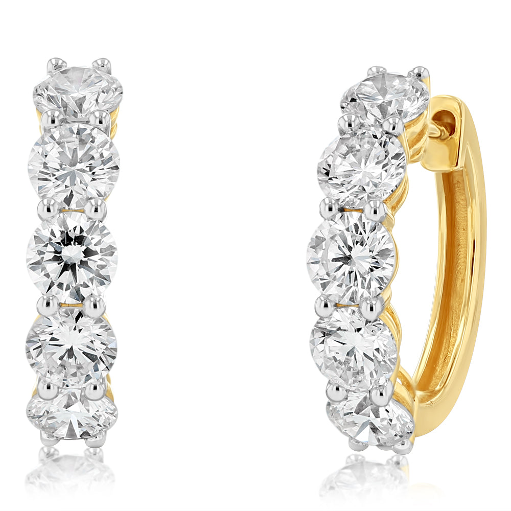 Luminesce Lab Grown 3 Carats Diamond Hoop Earrings in 9ct Yellow Gold