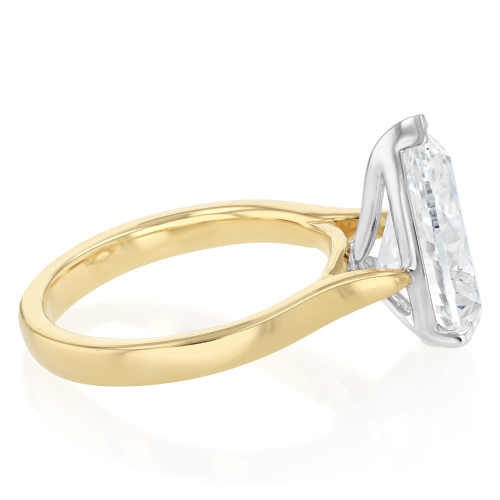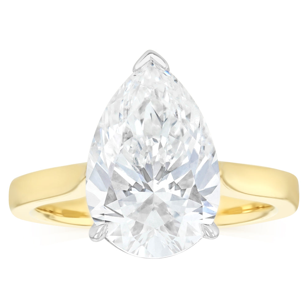 Luminesce Lab Grown 4 Carat Diamond Pear Solitaire Ring in 9ct Yellow and White Gold