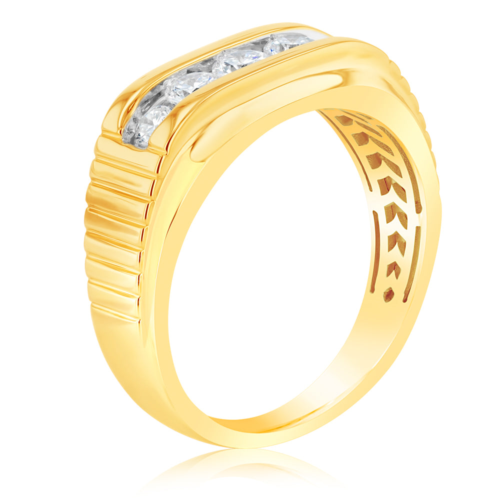 Luminesce Lab Grown 5 Diamonds Gents Ring in 9ct Yellow Gold