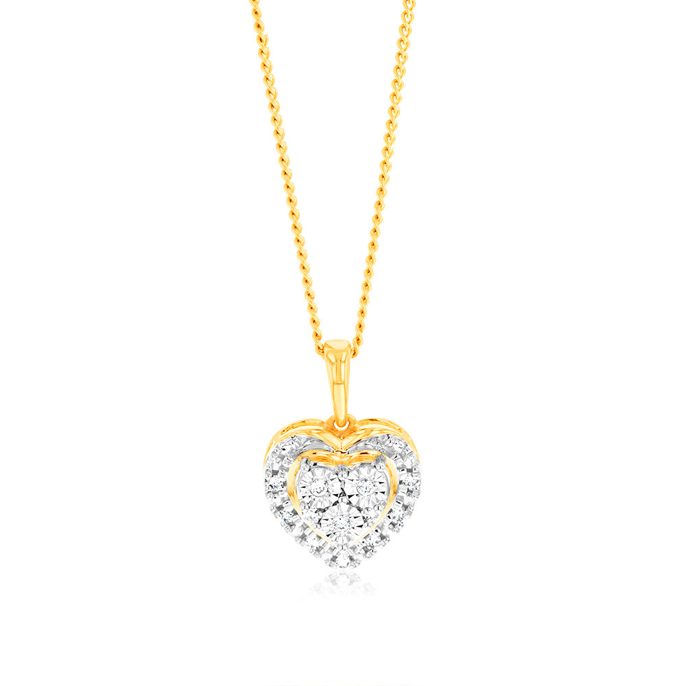 Luminesce Lab Grown 9ct Yellow Gold 16 Diamonds Heart Pendant