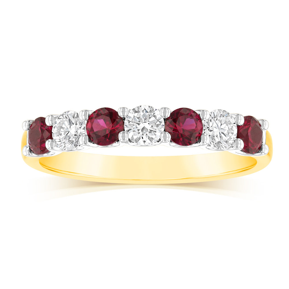 Luminesce Lab Grown 9ct Yellow Gold Created Ruby 0.30 Carat Diamond Ring