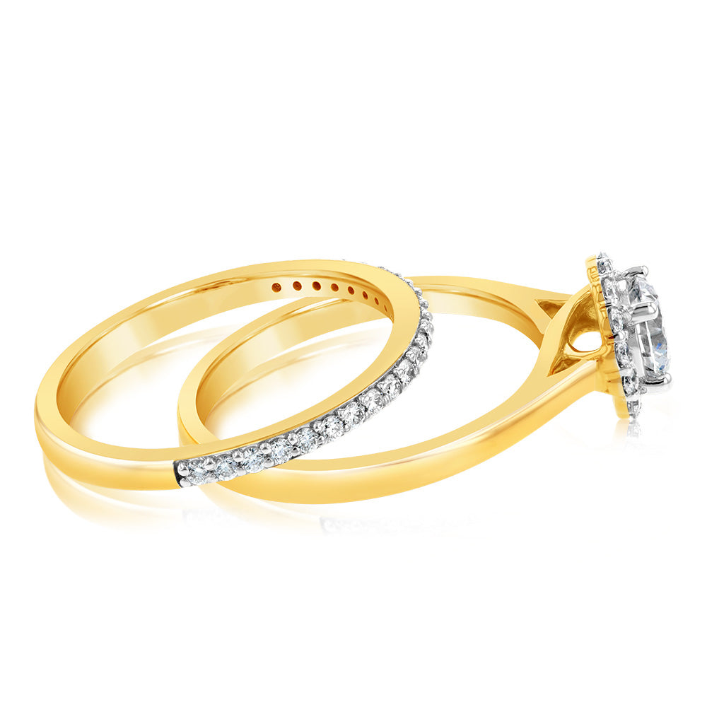 Luminesce Lab Grown Diamond 1 Carat Bridal Set in Halo Design set in 18ct Yellow Gold
