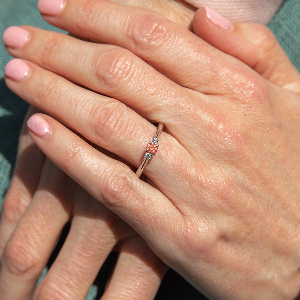 Luminesce Lab Grown Diamond Trilogy Ring with Pink Centre in 9ct White Gold