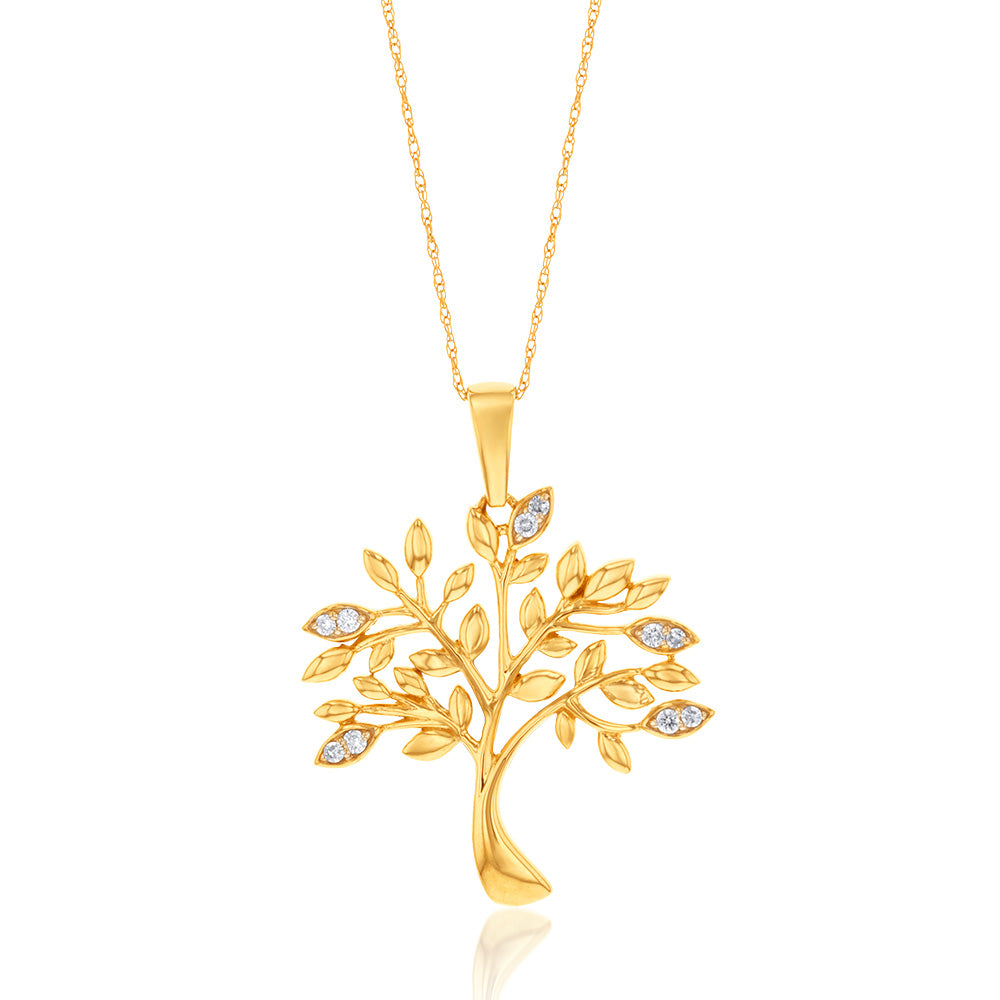 Luminesce Lab Grown Tree of Life Diamond Pendant in 9ct Yellow Gold including Chain