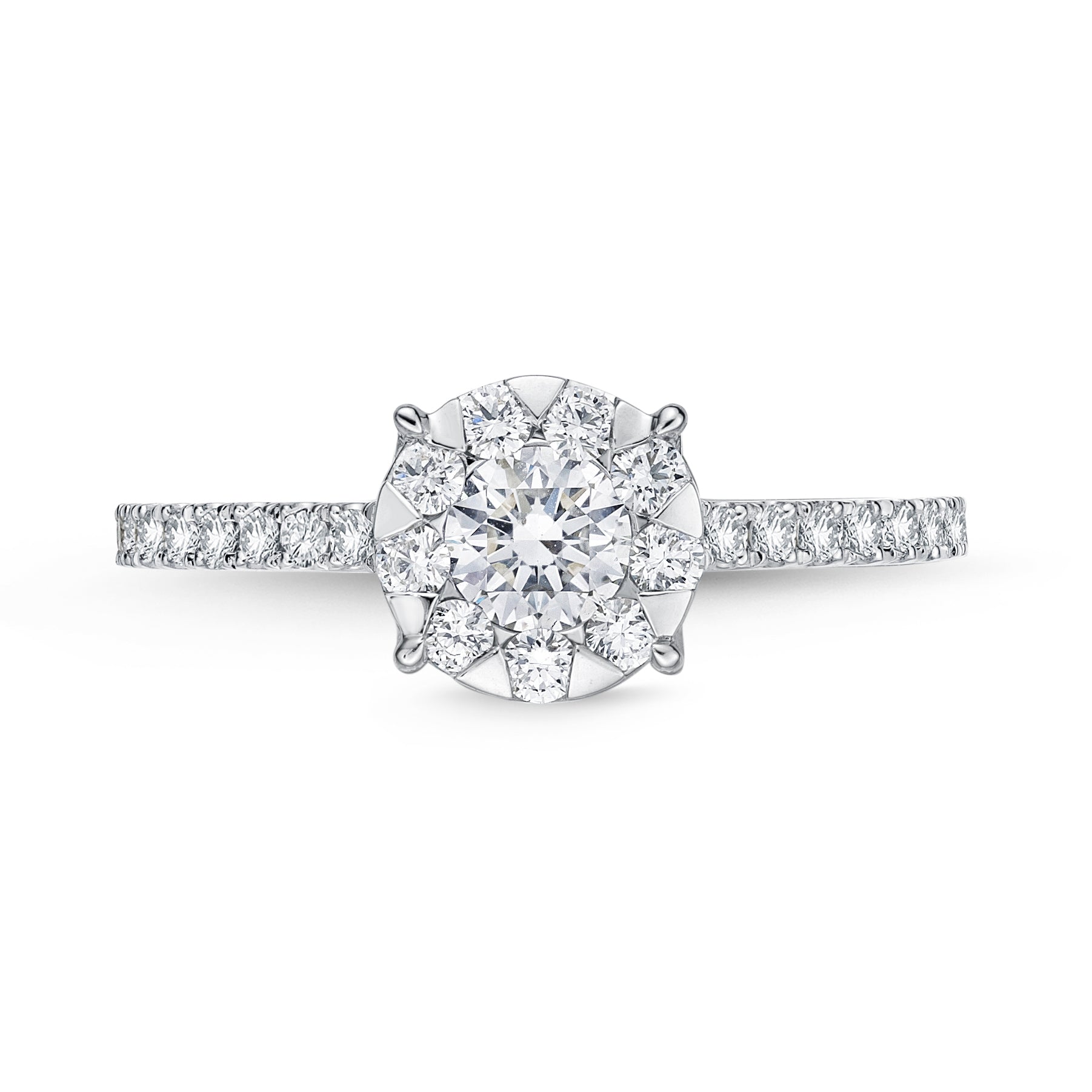 Memoire 18ct White Gold 0.45 Carat Diamond Bouquet Halo Solitaire Ring