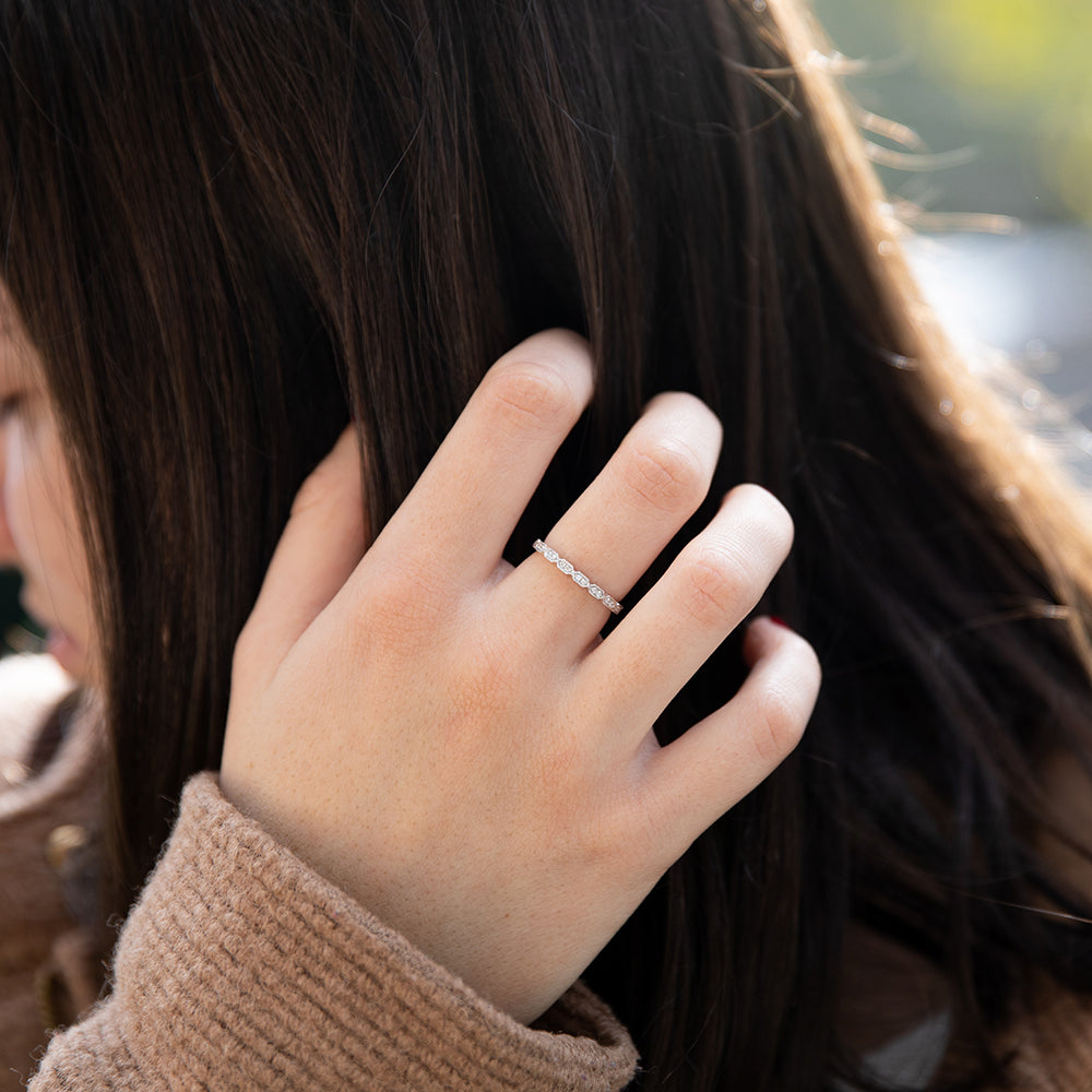 Memoire fine jewellery is manufactured to the highest quality, with a strict attention to detail and precision. This 18ct White Gold Vintage stacker is stunning enough to wear on its own or pair with other bands from the Memoire range.