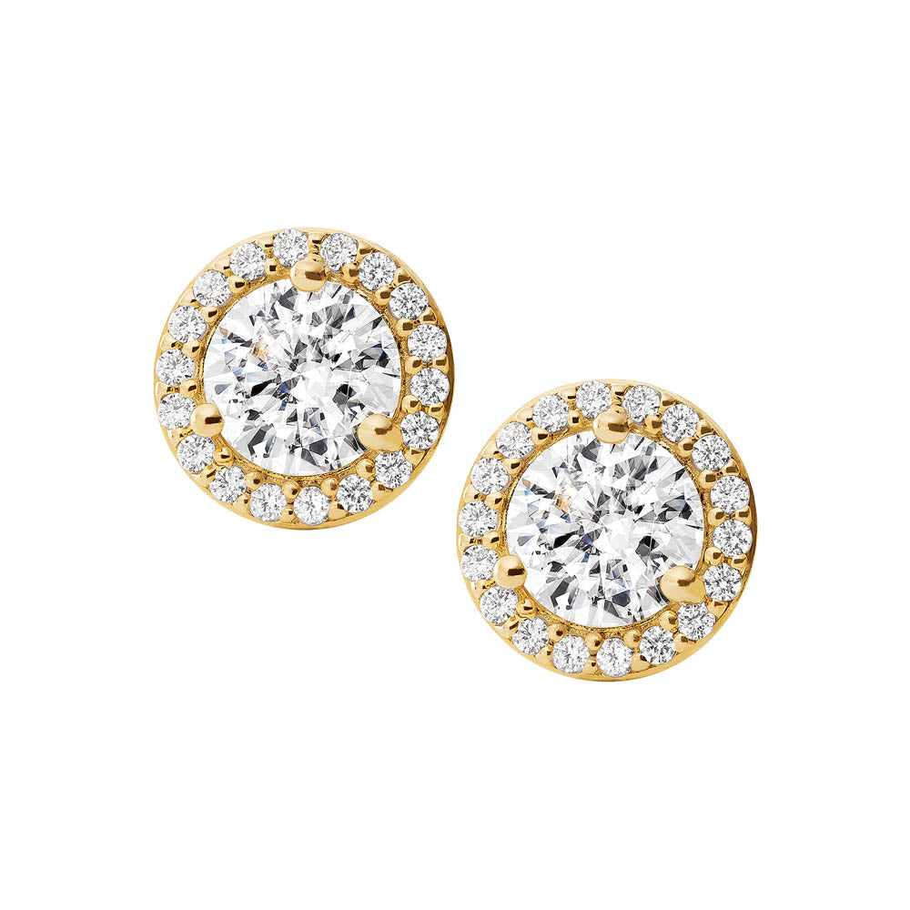 Michael Kors 14ct Yellow Gold Plated Sterling Silver Premium CZ Halo Stud Earring