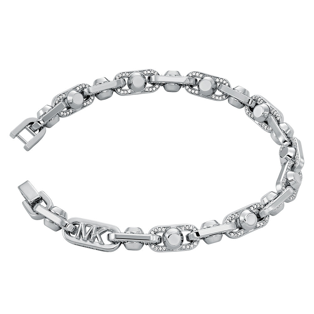 Michael Kors Silver Plated Brass Astor Link Pave 7.5" Bracelet