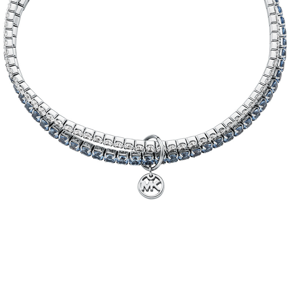Michael Kors Silver Plated Brass Clear And Denim Zirconia Stretch Tennis Bracelet