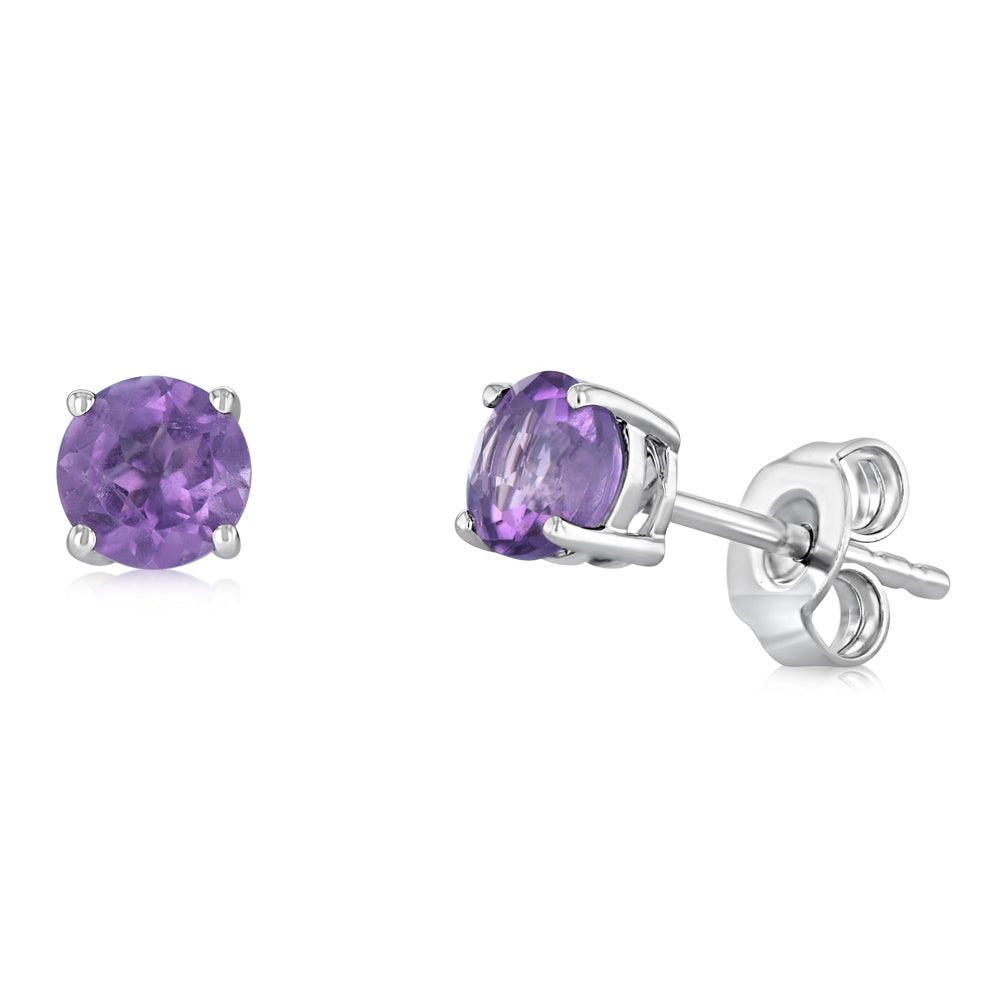 Natural Amethyst Stud Earrings in Sterling Silver
