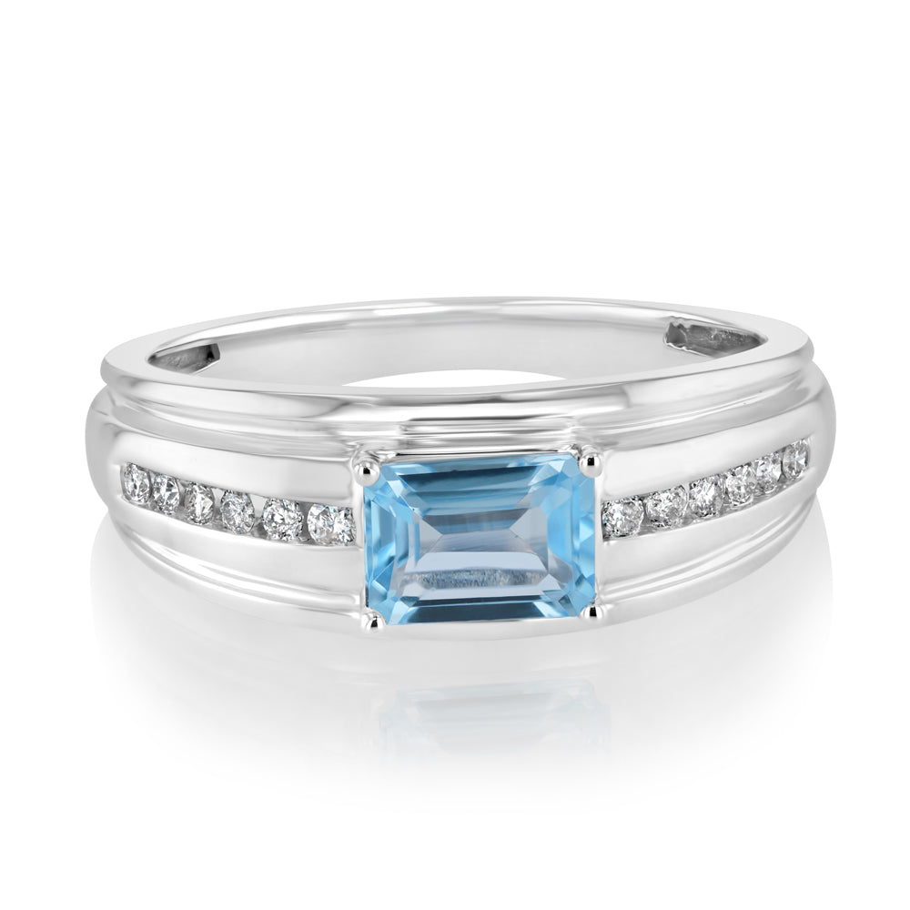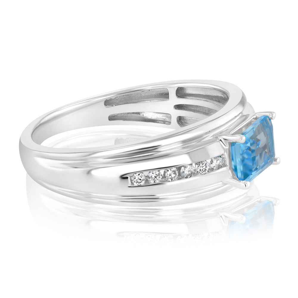 Natural Blue Topaz and 1/6 Carat Diamond Ring in 9ct White Gold